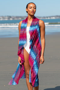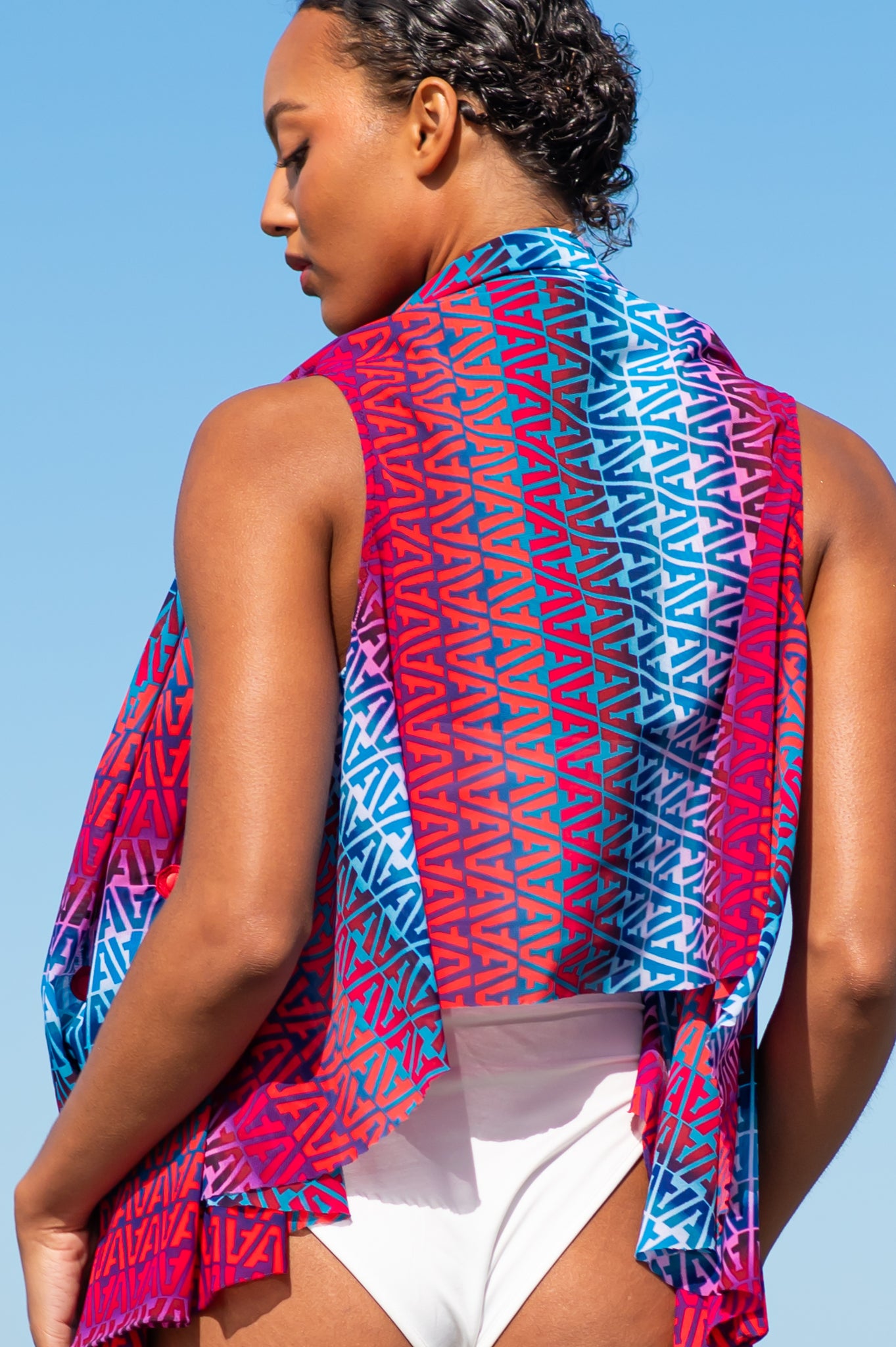 Using just 3 pairs of snaps, you can style this garment your way. Our light weight, wrinkle resistant cover ups are the perfect summer companion. Wear it over your swimsuit as a coverup, reverse it for a more elegant look, or simply style it as a top! Try it all 5 ways!